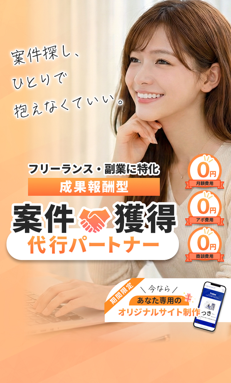 ヒアリングから提案、商談、受注まで。案件獲得に必要な工程を、一貫してサポートします。「何をどう進めればいいかわからない」、「営業に時間を取られたくない」そんな方でも、本業に集中しながら案件獲得が目指せる仕組みです。